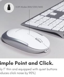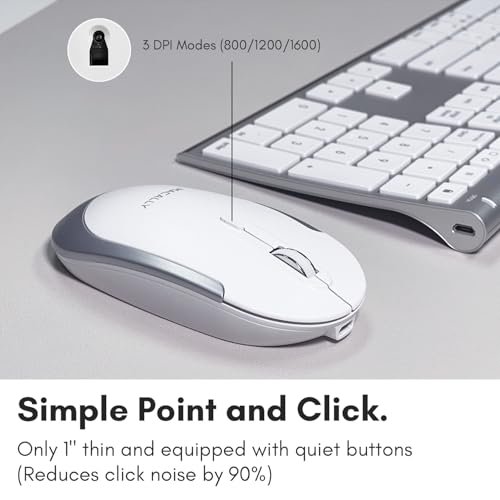 - 𝗘𝘃𝗲𝗿𝘆𝘁𝗵𝗶𝗻𝗴 𝗬𝗼𝘂’𝗹𝗹 𝗡𝗲𝗲𝗱: The imac keyboard and mouse combo has a bluetooth mac keyboard equipped with 110 scissor switch keys and 20 shortcuts keys while the silent mouse has 3 DPI modes for cusor sensitivity just like apple keyboard and mouse.