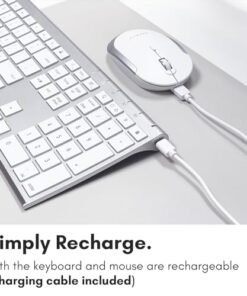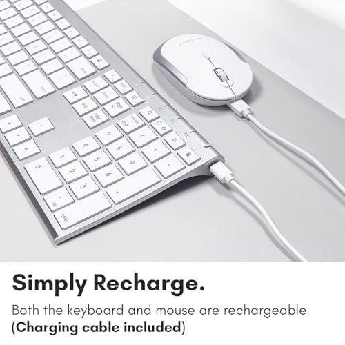 - 𝗦𝗶𝗺𝗽𝗹𝘆 𝗥𝗲𝗰𝗵𝗮𝗿𝗴𝗲: Our bluetooth keyboard and mouse combo for mac feature built-in rechargeable batteries that extends runtime per charge. Charging cable is included. 800mAh for keyboard. 300mAh for mouse.