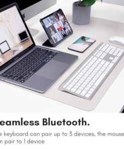 - 𝗠𝘂𝗹𝘁𝗶-𝗗𝗲𝘃𝗶𝗰𝗲 𝗕𝗹𝘂𝗲𝘁𝗼𝗼𝘁𝗵: Although mac focused. our macbook keyboard and mouse is also compatible with iOS. PC. and Android. You can seamlessly pair and switch between 3 devices such as your phone or tablet.