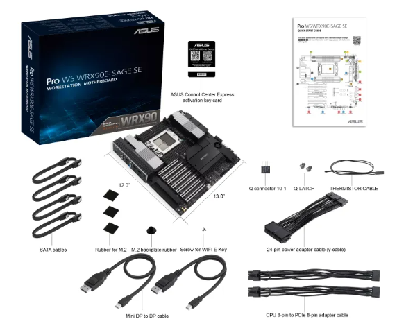 - Included Accessories: PCIe power cables, SATA cables, M.2 Q-Latch, and more.