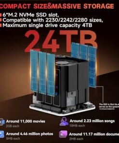 - 【Massive 24TB Storage & 6 M.2 SSD Slots】Beelink mini pc Expand your storage with 6 M.2 slots (up to 24TB total) compatible with 2230/2242/2280 SSDs. Save SSD space by installing lightweight systems on the 64GB eMMC. while Crucial SSDs ensure reliable data transfer and reduced corruption risks.